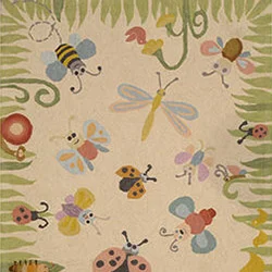 Critters atwitter! Beautify baby’s room with this lively rug from Momeni’s Lil Mo Classic collection. Ladybugs, dragonflies and other creatures populate this whimsical meadow scene bordered by fresh green blades of grass. The beige background is perfect for showing off the rug’s delightful denizens. Hand-hooked of pure cotton, the rug features a cut-loop construction that gives the printed motifs a raised effect and tons of texture.