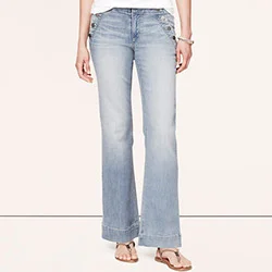 Sitting lower on the waist, we anchored this trouser pair with seafaring button details—and crafted them in a lightly sanded, sea-meets-sky hue.