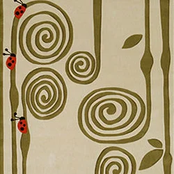 Ladybug, ladybug! Hip and quirky meet in the middle with this unique rug from Momeni’s Lil Mo Whimsy Collection. Designed to help update outgrown décor, the Whimsy collection is a perfect match for would-be artists and dreamers. With swirly, whirly lines, demure ladybugs and a grown-up palette of olive green and ivory, this rug exudes irresistible style and charm. Hand-tufted mod-acrylic is soft, strong and flame-retardant.