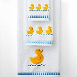 Make way for ducklings! Cheerful terry ducks make great bath time companions for your little one. Also perfect for a happy beach house bathroom! Collection includes bath, wash and hand towels in the gentlest cotton.