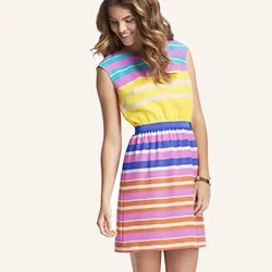 In vivaciously sweet bubble gum hues, we think this darling dress—with a flattering elasticized waist—is a cause for celebration.