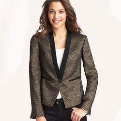 We struck gold with this polished glam must - tailored in metallic stretch tweed for mesmerizing luster.